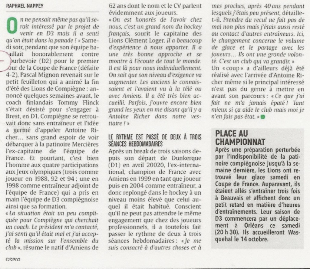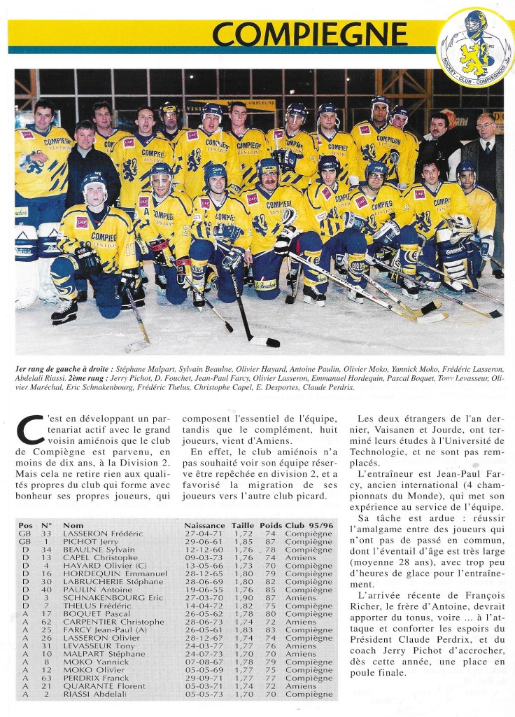 D’autant que parmi les Lions évoluait un autre amiénois célèbre et talentueux, un certain Pierre Pousse (futur entraîneur national adjoint) sans parler que le nouveau duo compiégnois formé par Jean-Paul Farcy et Christophe Ribanelli faisait des étincelles sur la glace.