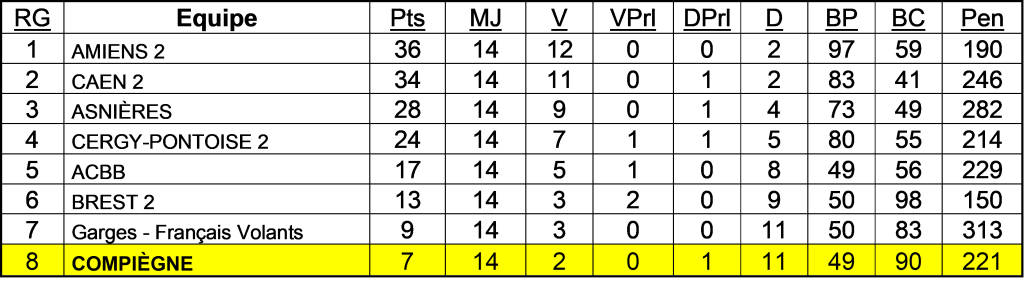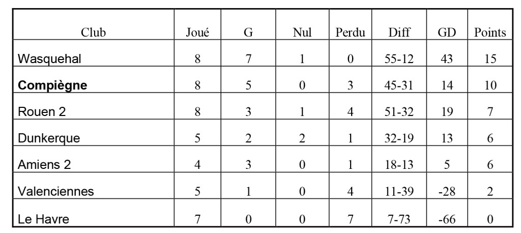 Dans la poule nord, les Lions de l’Oise terminèrent en quatrième position derrière les équipes réserves de Reims et d’Amiens ainsi que Troyes.