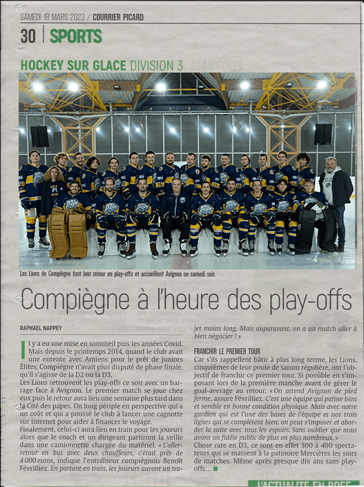 Le match était pourtant bien parti puisque les Compiégnois menaient de deux buts (1-3) à la fin du premier tiers-temps. Mais les Avignonnais ne lâchaient rien et l’emportaient finalement sur le même score que le HCC à l’aller (6-4).