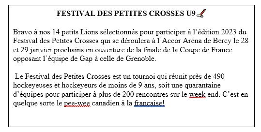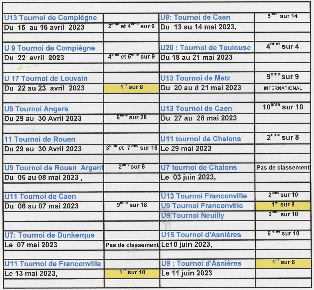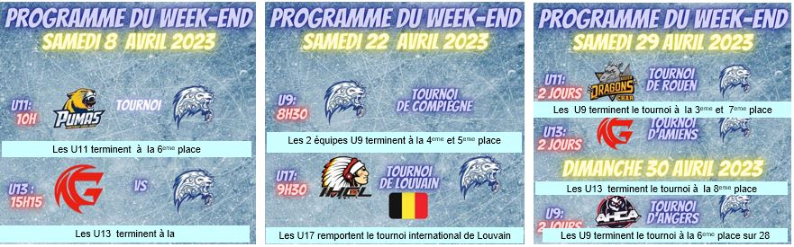 Nos Lions finissent 3eme de ce tournoi remporté par 1 ACBB – 2 Orléans –3 Compiègne 4_Valenciennes – 5 Rouen – 6 Franconville-7 Asnières / Mante-8 Dunkerque