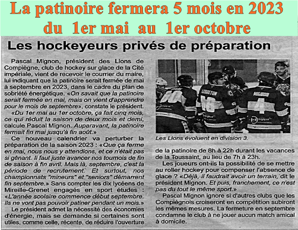 En effet, quelques mois auparavant, la veille de jouer un match à domicile contre Amneville, des fuites de fréon apparurent et le directeur de la patinoire interdit de jouer le match. Du coup la FFSG demanda au club de Compiègne de se retirer de la Division 2, quoi qu’il arrive sur le plan sportif. Ce fut un véritable coup dur puisque, à cause de cette fermeture, le club subira une perte de plus de 100 licenciés.