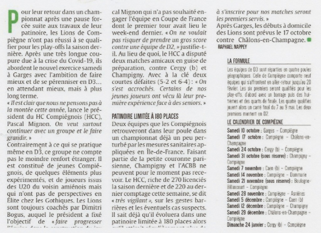 Revenu en D3 l’an dernier après un sommeil forcé, le HCC Compiégnois ouvre sa saison ce week-end.