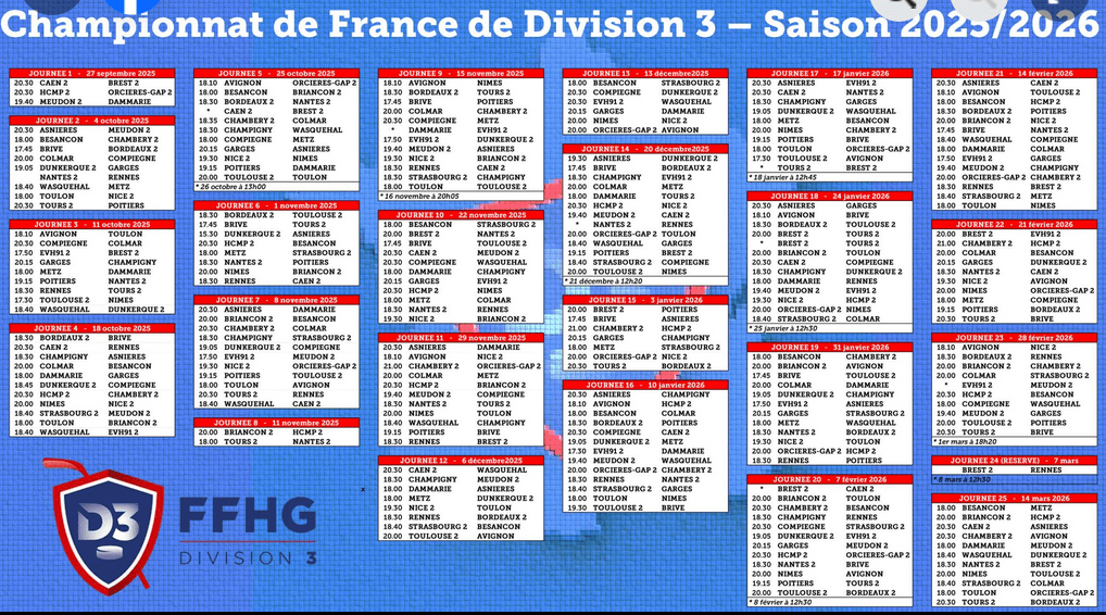 Calendrier D3 2025-2026