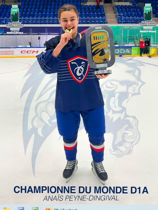 Malgré la défaite 2 à 0 aujourd’hui des bleuettes, Anais a porté haut les couleurs des Lions de Compiègne en étant nommée JOUEUSE DU MATCH au championnat du Monde U18 féminin contre l’Italie.